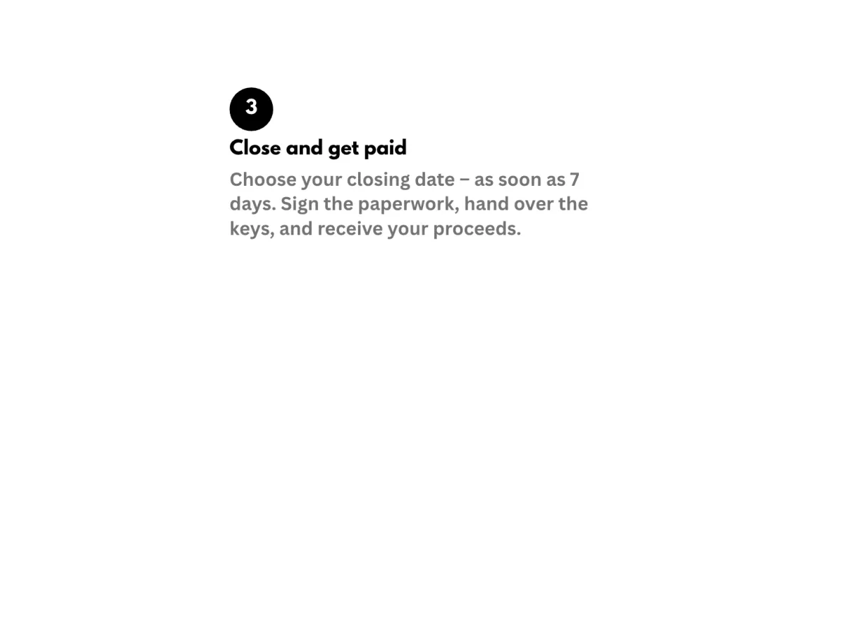 Get your cash in as fast as 7 days, no need to wait months. It’s up to you if you want to close quickly or slowly.